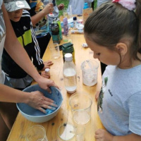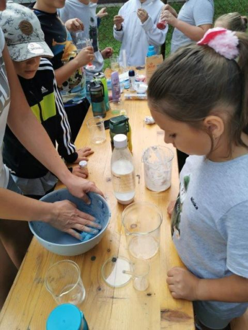 Ďalší deň bol zameraný na prácu RCHBO špecialistu, kde si deti skúšali obliekať ochrannú masku a ochranný oblek. Naši chemici si pre deti prichystali rôzne aktivity ako vyrábanie slizu a vytváranie rôznych chemických pokusov.