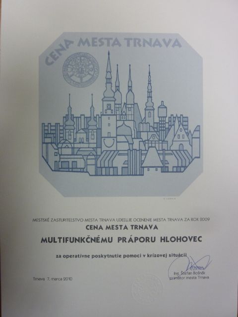 Slávnostné zasadnutie mestského zastupiteľstva spojené s odovzdávaním ocenení sa uskutočnilo 7. marca o 16. hodine v sále Marianum na Hollého ulici v Trnave. Nositeľmi Ceny mesta Trnavy sa stal aj Multifunkčný prápor Hlohovec za operatívne poskytnutie pomoci mestu Trnave a jeho občanom v krízovej situácii. Ocenenie prevzal veliteľ Multifunkčného práporu pplk. Ing. Ing. Daniel LIČKO z rúk primátora mesta Ing. Štefana BOŠNÁKA za prítomnosti poslancov, občanov a priateľov mesta a v neposlednej rade aj príslušníkov Multifunkčného práporu. Slávnostného ceremoniálu sa zúčastnili mjr. Ing. Adrián MELEGA, šbnrtm. Ing. Ľudovít STAS, kpt. Ing. Martin PEŤKO, npor. Ing. Igor ONDRIČKO a rtm. Bc. Jaroslav TÓTH.