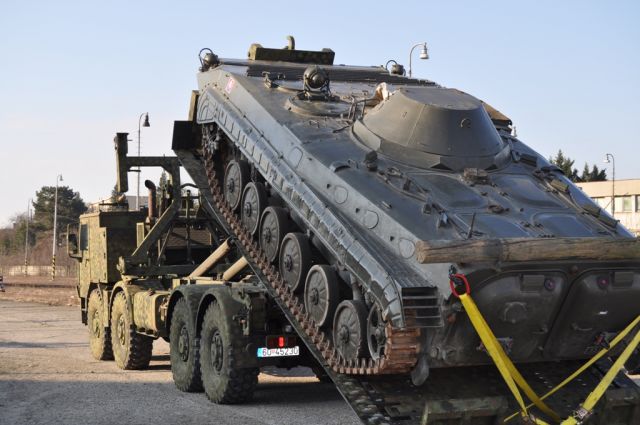 Na záver zamestnania bola vykonaná ukážka nakladania a upevňovania bojovej techniky prostredníctvom TATRY 815 MULTILIFT pomocou oceľovej rampy FLATRACK príslušníkmi dopravného práporu z Hlohovca.