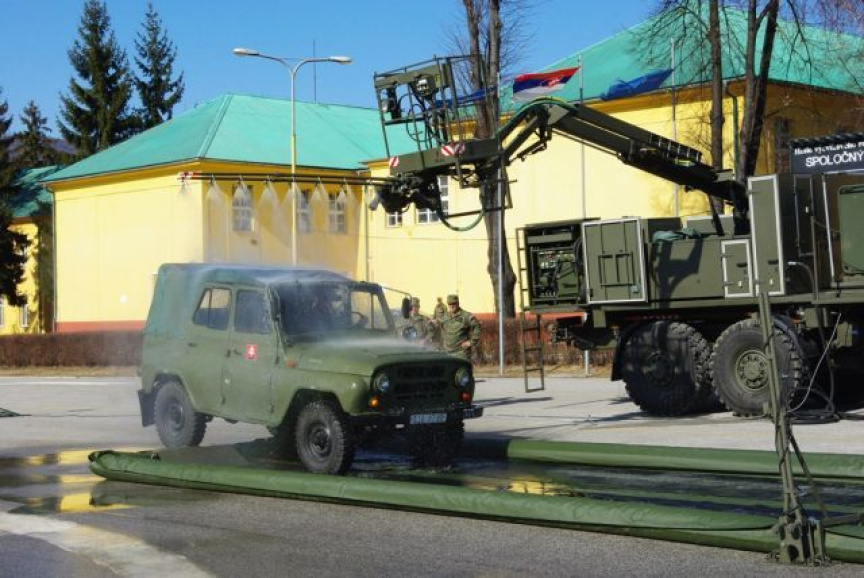 Veliteľské zhromaždenie v popoludňajších hodinách pokračovalo praktickou ukážkou dekontaminačného vozidla DEKVOZ a ukážkou poľnej mechanizovanej práčovne.
