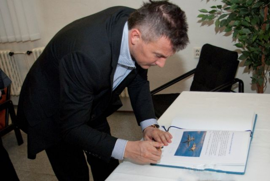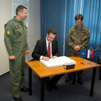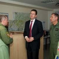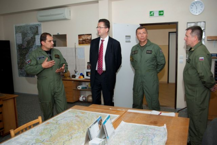 Program dnešnej návštevy pokračoval na leteckej základni Sliač, domovskej základni slovenského stíhacieho letectva. Veliteľ základne plukovník Vladimír Lisý predstavil hosťom históriu, poslanie a aktuálne úlohy útvaru. Veliteľ bojovej letky podplukovník Marián Bukovský a veliteľ výcvikovej letky podplukovník Roman Poláček informovali prítomných ministrov o spôsobe výcviku pilotov, ktorí po dosiahnutí potrebných spôsobilostí zabezpečujú systém NATINADS. Súčasťou programu bola aj prehliadka priestorov pohotovostného systému, odkiaľ v prípade narušenia vzdušného priestoru alebo nutnej pomoci civilnému lietadlu v núdzi, vzlieta dvojica pohotovostných stíhačov na lietadlách MiG-29.