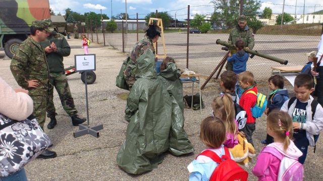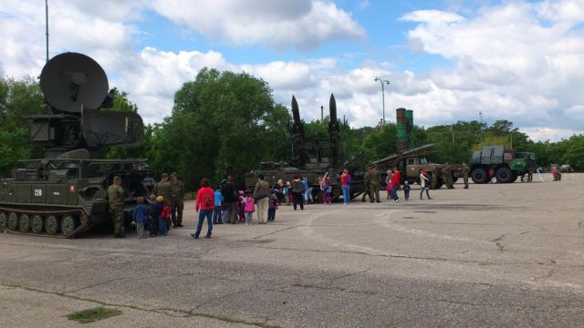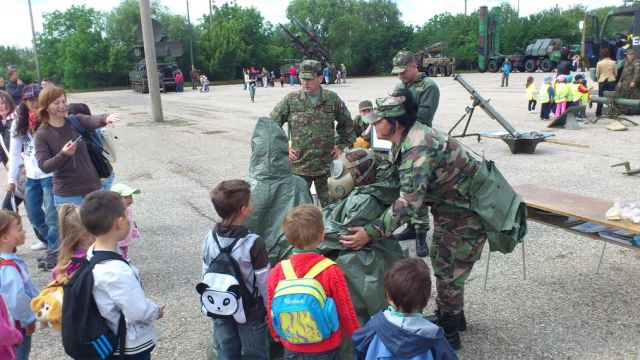 Bojové obrnené vozidlá a „rakeťácka“ technika boli k nahliadnutiu z vonka i z vnútra. Deti si mohli pochytať, poťažkať či vyskúšať prostriedky spojovacej techniky, chemickej ochrany, samopal či guľomet, protilietadlovú raketu IGLA i nosný modulárny systém. Tí odvážnejší si aj zastrieľali z airsoftových zbraní alebo sa povozili na terénnych vozidlách. Program bol spestrený dynamickou ukážkou prepadu vozidla a zneškodnenia nepriateľa, ktoré pripravili vojaci 12. mechanizovaného práporu, a ukážkou výcviku vojenských psov. Atmosféru dopĺňal farebný dym a výbuchy signalizačnej munície.