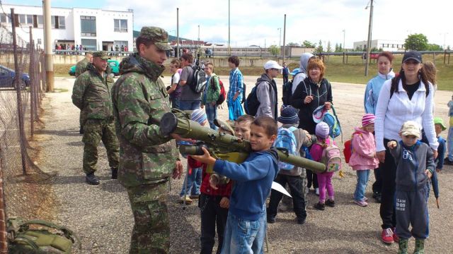 Bojové obrnené vozidlá a „rakeťácka“ technika boli k nahliadnutiu z vonka i z vnútra. Deti si mohli pochytať, poťažkať či vyskúšať prostriedky spojovacej techniky, chemickej ochrany, samopal či guľomet, protilietadlovú raketu IGLA i nosný modulárny systém. Tí odvážnejší si aj zastrieľali z airsoftových zbraní alebo sa povozili na terénnych vozidlách. Program bol spestrený dynamickou ukážkou prepadu vozidla a zneškodnenia nepriateľa, ktoré pripravili vojaci 12. mechanizovaného práporu, a ukážkou výcviku vojenských psov. Atmosféru dopĺňal farebný dym a výbuchy signalizačnej munície.