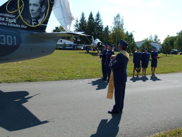 Súčasťou slávnostného nástupu bol akt požehnania lietadla L-39 Albatros, na ktorého zadnej časti krídla je zobrazený portrét jedného z najväčších hrdinov československého vojenského letectva generálmajora Otta Smika. Nástup pokračoval otvorením vonkajšej expozície leteckej techniky – trojice lietadiel MiG-21, MiG-