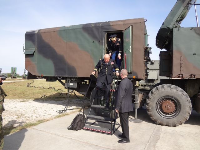 Po krátkom privítaní delegácie, oboznámení s históriou úlohami, poslaním a štruktúrou brigády si delegácia mala možnosť pozrieť zaujatie palebného postavenia a rozvinutie kompletu S-300 PMU do bojovej zostavy pod velením veliteľa skupiny podplukovníka Petra Janotu. Počas ukážky tváre príslušníkov Národnej gardy štátu Indiana prezrádzali veľké nadšenie a obdiv nielen z PLRK S-300, ale aj profesionality našich vojakov.