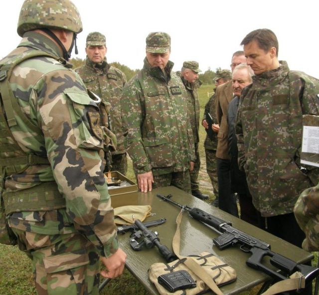 Pre návštevu bola pripravená aj ukážka ručných zbraní, ktoré sú používané u 2.mb. Pištol vzor 82, samopal vzor 58, ostreľovacia puška AW-50 či SVDN Dragunov rozpútali diskusiu o ich možnej modernizácií či nahradení inými typmi modernejších zbraní. Veliteľ brigády objasil návšteve problémy s akými sa strelci z týchto zbraní stretávajú, ale tiež poukázal aj na ich pozitívne vlastnosti a ich stále využívanie v OS SR.