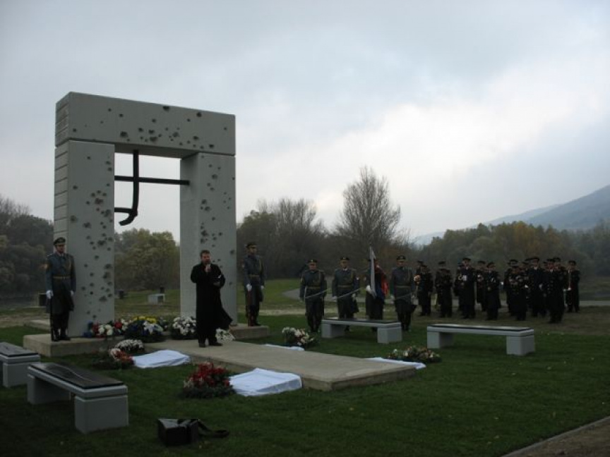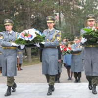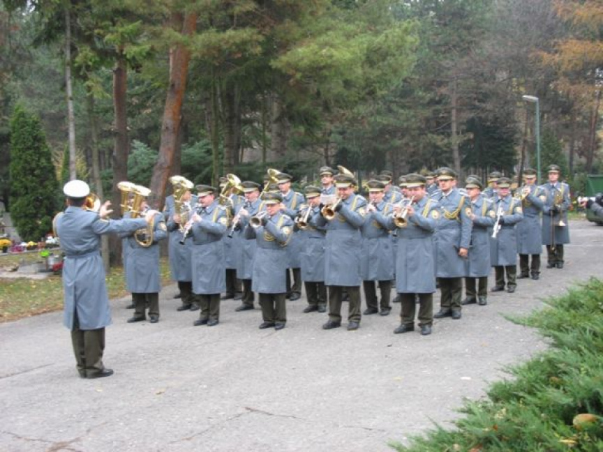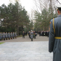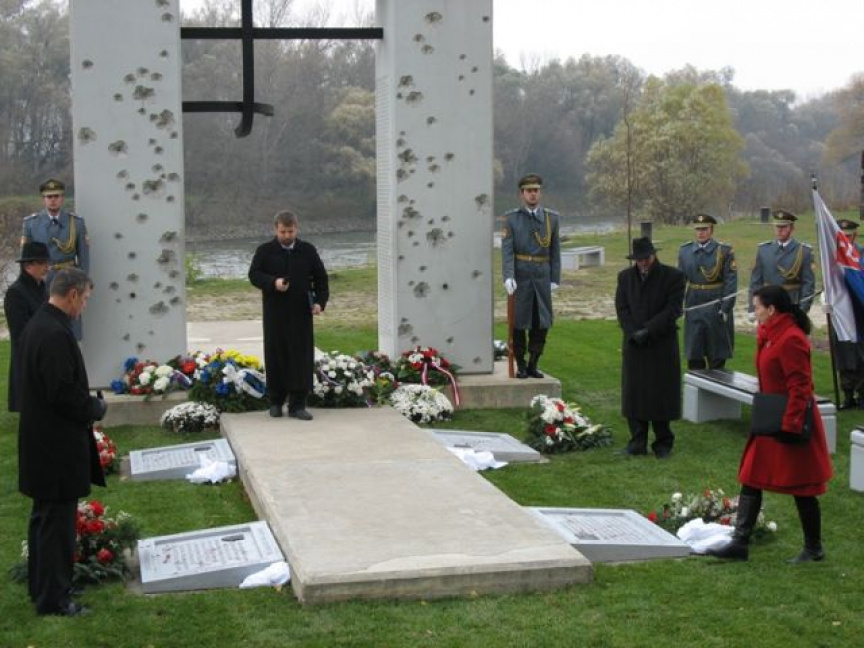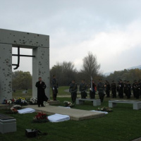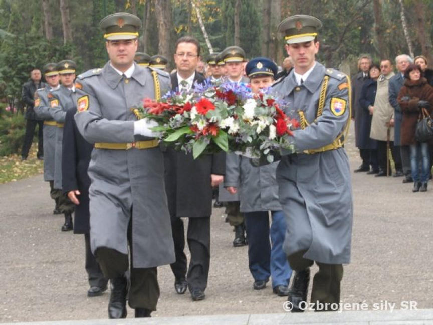 Príslušníci Veliteľstva posádky Bratislava Čestná stráž OS SR za hudobného sprievodu Vojenskej hudby OS SR položili vence k Pamätníku umučeným a popraveným väzňom komunizmu na ružinovskom cintoríne v Bratislave pri príležitosti 23. výročia.
