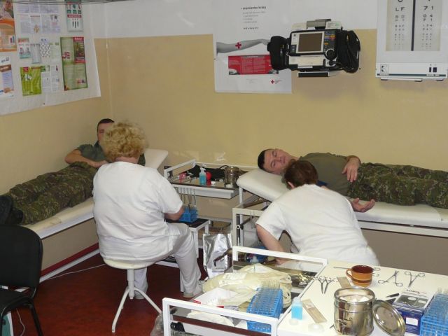Dňa 5.decembra 2012 sa na obväzisku Samohybného delostreleckého oddielu v Michalovciach uskutočnila tradičná Mikulášska kvapka krvi pod patronátom veliteľa shdo pplk. Ing. Andreja STAŠKA za riadenia rtn. Bc. Marcely KENTOŠOVEJ. Táto akcia sa konala na základe dlhoročnej spolupráce so Slovenským Červeným krížom Michalovce a s Hematologicko-transfúznym oddelením NsP Štefana Kukuru v Michalovciach. Z Červeného kríža prišla zdravotnícka referentka Marta KUNKOVÁ a Patrik KOSTREJ. Odbery krvi realizoval 6 členný tým pod vedením MUDr. Margity LINKOVEJ z hematologicko-transfúzneho oddelenia. Vzácnu tekutinu- krv darovalo 26 príslušníkov shdo a 4 príslušníci ženijnej roty 2. mb v Michalovciach. Boli podané návrhy na udelenie bronzovej Jánskeho plakety pre 2 profesionálnych vojakov shdo. V priebehu roka 2012 to bolo v poradí štvrté organizované darovanie krvi u shdo. Všetkým darcom krvi ďakujeme za ich ušľachtilý čin a personálu za uskutočnenie darovania. Ďalšie darovanie bude Valentínska kvapka krvi vo februári 2013.
