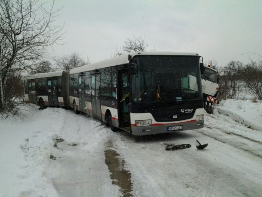 Len pár metrov za tabuľou obce Nitrianske Hrnčiarovce však ich cestu prerušila nečakaná prekážka. V neprehľadnej zákrute autobus mestskej hromadnej dopravy v celej svojej dĺžke bezradne križoval komunikáciu a tesne oproti nemu sa vo veľmi podobnej pozícii nachádzalo vozidlo odťahovej spoločnosti. Bolo zrejmé, že bez cudzej pomoci sa odtiaľ nedostanú.
