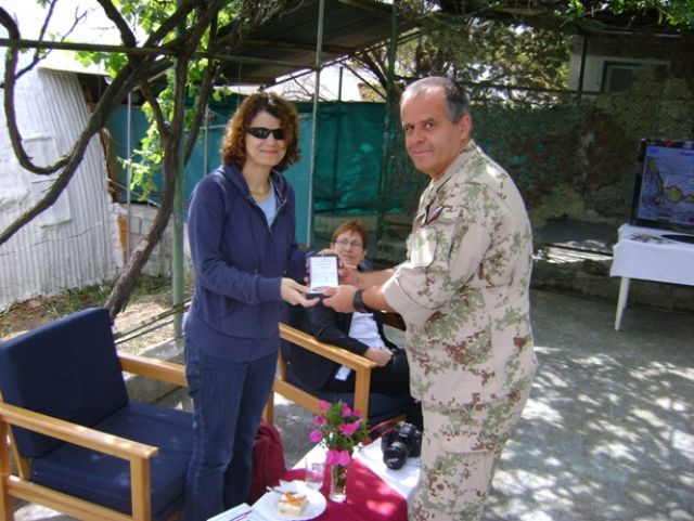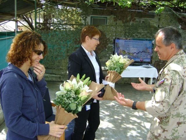 Po ukončení brífingu a krátkej diskusii odovzdal veliteľ SEC 4 zástupkyni OSN kyticu kvetov a venoval jej pamätnú plaketu.
