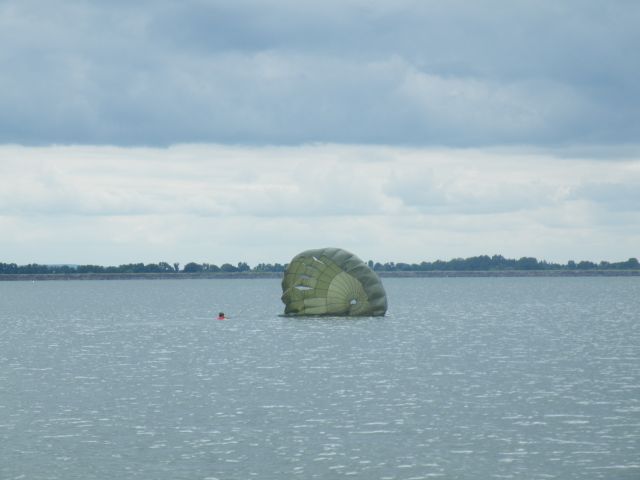 Padákoví odborníci úspešne absolvovali aj zoskoky padákom s doskokom do molitanového kruhu na okraj brehu vodnej nádrže, ktorých účelom bolo zdokonaliť sa v presnosti pristátia. Najťažšou úlohou výcviku bola bez pochýb simulovaná evakuácia osôb z vodnej hladiny a taktiež vysadenie hasičov - záchranárov na vodnú hladinu počas nízkeho letu vrtuľníka.