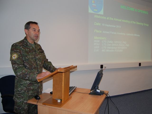 Členov riadiacej skupiny, ktorými sú náčelníci generálnych štábov ozbrojených síl Maďarska, Rumunska, Slovenskej republiky a Ukrajiny, v utorok 10. septembra v priestoroch Akadémie ozbrojených síl generála Milana Rastislava Štefánika privítal prvý zástupca náčelníka Generálneho štábu OS SR generálmajor Miroslav Kocian.
