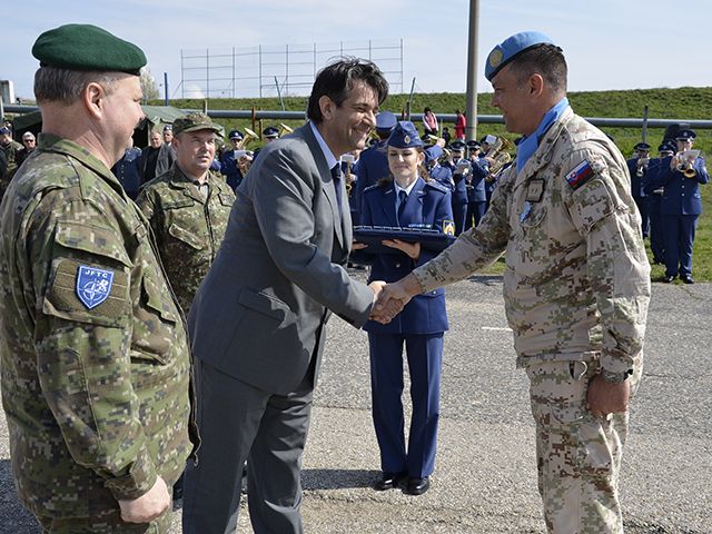 Druhý zástupca NGŠ generálmajor Pavel Macko a cyperský veľvyslanec na Slovensku Marios Kountourides vo svojich príhovoroch poďakovali a ocenili kvalitnú a neľahkú prácu vojakov, ktorí v mierovej operácii na Cypre pôsobili celý jeden rok, vzdialení od svojich rodín, blízkych a známych. Za kvalitné splnenie operačných úloh si 84 profesionálnych vojakov tejto rotácie slávnostne prevzalo medailu za službu v mierových pozorovateľských misiách.