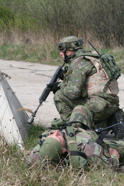 Príslušníci strážnej jednotky, ktorú tvoria predovšetkým vojaci nitrianskeho mechanizovaného práporu, museli v záverečnej časti prípravy odraziť nejeden útok na svoj tábor. Tentoraz sa sním museli vysporiadať vojaci 4. strážnej čaty. Jej veliaci poddôstojník nadrotmajster Miloš Radič hovorí, že v uplynulých dňoch reagovali na množstvo útokov. Od raketových, mínometných, pozemných až po kombinované. „Vidieť, že s postupujúcim výcvikom narastá bojová sila našej jednotky. Starší, skúsenejší vojaci, ktorí už prešli operáciou ISAF, pomáhajú novým členom jednotky získať potrebné skúsenosti. Napríklad, zástupca veliteľa družstva čatár Juraj Hoppan takto vedie strelca vojaka Filipa Benka,“ s uspokojením konštatuje veliaci poddôstojník, ktorý už pôsobil v strážnej jednotke v Deh Rawoode.