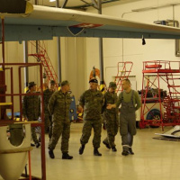 Po úvodnej prezentácii pokračovala návšteva prehliadkou priestorov dopravného krídla, kde si náčelník Generálneho štábu prezrel budovu riadiacej veže, techniku vojenskej hasičskej jednotky , stojánku a hangáre s leteckou technikou.