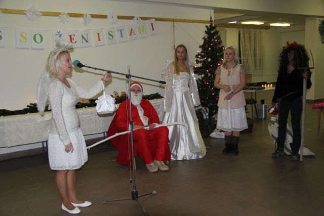 Na stretnutí prítomní privítali postupne dvoch anjelikov - moderátorov a tiež dvoch čertov, keďže malých nezbedníkov bolo neúrekom. Napokon sa dostavil aj Mikuláš v sprievode anjela - umelkyne a dvoch ženistov – strážcov sladkých prekvapení pre deti. Mikulášovi sa postupne všetkých 46 detičiek odvážilo niečo zarecitovať alebo zaspievať a mohli si rozbaliť svoju balíčkovú odmenu. V rámci Mikulášskej pošty tiež nakreslili svoje priania Ježiškovi a počas diskotéky si zatancovali s prítomnými postavičkami.