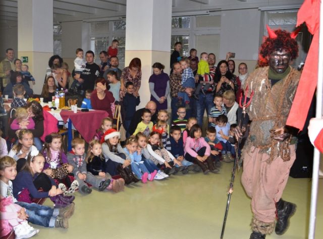 Okolo 11. hodine doobeda prišiel všetkými očakávaný Mikuláš, ktorý rozdával sladké balíčky. Po jeho príchode sa deťom rozžiarili očká plné prekvapenia, šťastia a radosti z darčekov i sladkostí. Mikulášovi pri rozdávaní balíčkov pomáhal anjelik a detičky strašil škaredý čert. Všetky detičky sa statočne držali a Mikulášovi zarecitovali básničku alebo tie hanblivejšie povedali aspoň svoje meno. Každé dieťa bolo po básnickom a speváckom výkone obdarované darčekmi. Okrem sladkých dobrôt ich čakal bohatý program a veľa zábavy. Čakalo ich súťaženie, maľovanie obrázkov, tancovanie, zdobenie perníkov, sledovanie rozprávok a tanečné vystúpenie.