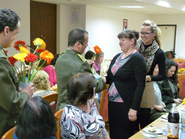 Zástupca veliteľa podplukovník Tibor Meliš odovzdal kytice prítomným dámam a zaželal k sviatku šťastie, lásku a mnoho pracovných úspechov v práci.