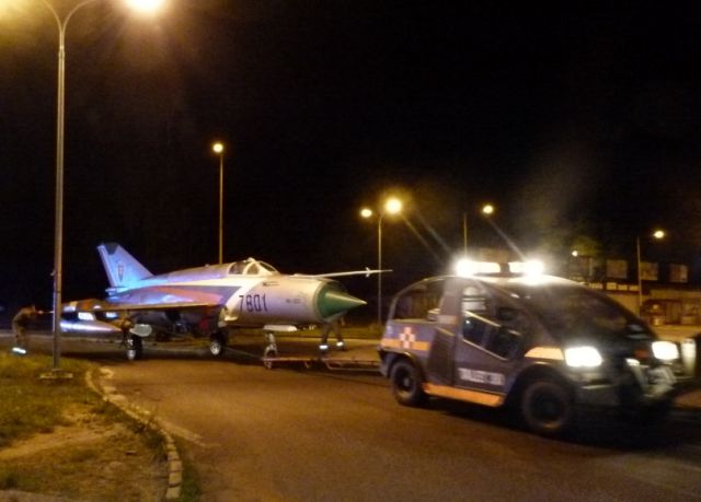 a predpísaných prác prepravovali exponát stíhačky typu MiG-21 zo Zmiešaného krídla Sliač na Námestie SNP vo Zvolene.