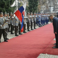 Príslušníci Čestnej stráže Ozbrojených síl SR, pod velením podplukovníka Waltera Teimla, vzdali gruzínskemu premiérovi na nádvorí Úradu vlády SR vojenské pocty.