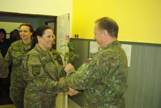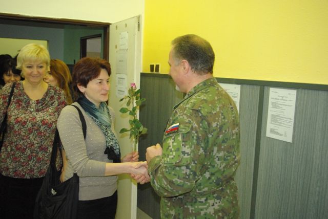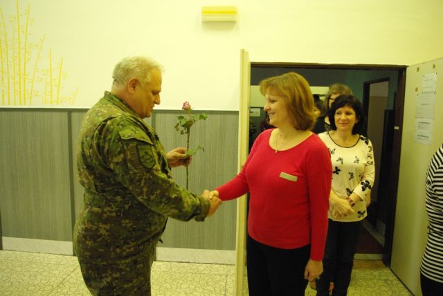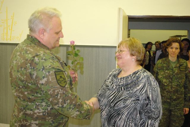 Veliteľ pozemných síl privítal ženy v priestoroch jedálne veliteľstva, kde ich na znak vďaky a uznania, spolu so svojím zástupcom brigádnym generálom Krištofovičom a veliteľom brigády bojového zabezpečenia plukovníkom Ševčíkom, obdaroval kvetinou. Vo svojom krátkom príhovore zablahoželal prítomným ženám k ich sviatku, vyzdvihol význam tohto dňa, objasnil jeho pôvod a históriu. Vo svojich slovách ďalej poďakoval za všetko dobré, čo vykonali doteraz v prospech pozemných síl, za vylepšovanie atmosféry v pracovnom prostredí a ich trpezlivosť a zaželal im veľa zdravia, šťastia a aby sa cítili ctené kolegami.