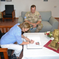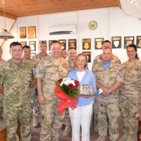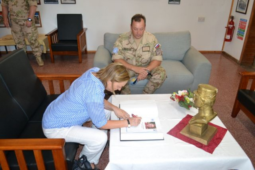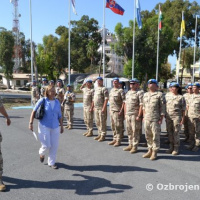 Na úvod svojej návštevy tradične pozdravila nastúpenú jednotku v sprievode veliteľa Sektoru 4 podplukovníka Jozefa Paňka a prihovorila sa slovami chvály a vďaky za vynikajúcu spoluprácu a profesionálne plnenie operačných úloh Sektoru 4 počas jej vyše šesťročného pôsobenia na Cypre.