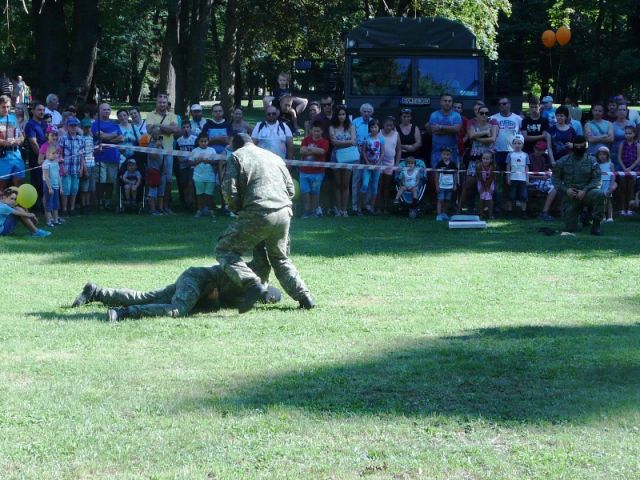 Pre malých, ale aj veľkých divákov mali pripravenú statickú ukážku zbraní a techniky. Pre tých menších si pripravili aj vojenské hry ako preťahovanie lanom, či detskú prekážkovú dráhu, za čo si najmenší súťažiaci odniesli aj sladkú odmenu. Najviac potlesku a údivu od malých a veľkých divákov nielen z Trebišova si však odniesli profesionálni vojaci pod velením poručíka Romana Markoviča za ukážku boja z blízka.