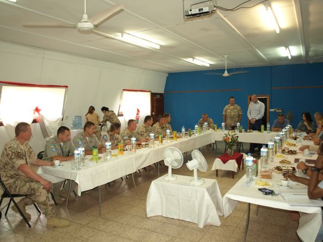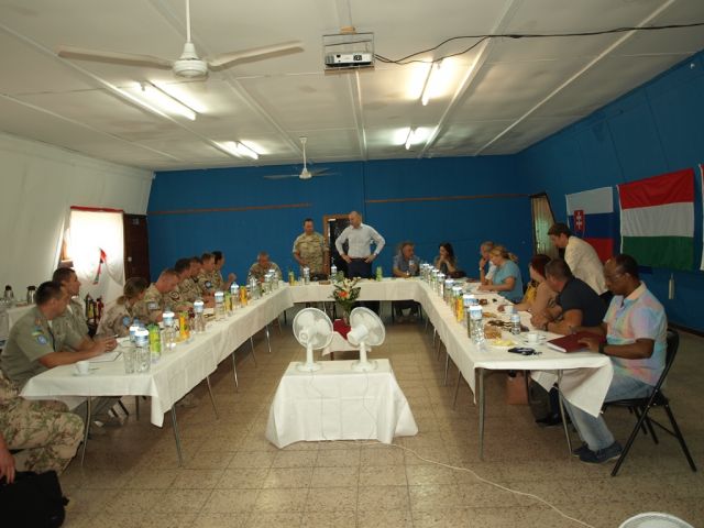 Chief of Mission Support, pán Joel Cohen, spolu s ostatnými riaditeľmi jednotlivých sekcií postupne informovali ostatných účastníkov stretnutia o aktuálnej situácii vo vyššie spomínaných oblastiach. Jedna z pozitívnych správ sa týkala postupnej obmeny terénnych motorových vozidiel pre patrolovacie jednotky. Taktiež zo strany pána Cohena bola vyjadrená podpora pre realizáciu dlhodobých zámerov a projektov týkajúcich sa priamo Sektoru 4. Týmito zámermi a projektami sú pripojenie pozície PB-91 na verejnú elektrickú sieť, vybudovanie zdravotníckeho strediska v kempe CSI Athienou, pripojenie kempu generála Štefánika na verejnú vodovodnú a kanalizačnú sieť a v neposlednom rade rozšírenie UN pozície CP-10 z dôvodu navýšenia počtov v súlade s nými tabuľkovými počtami.