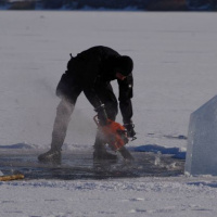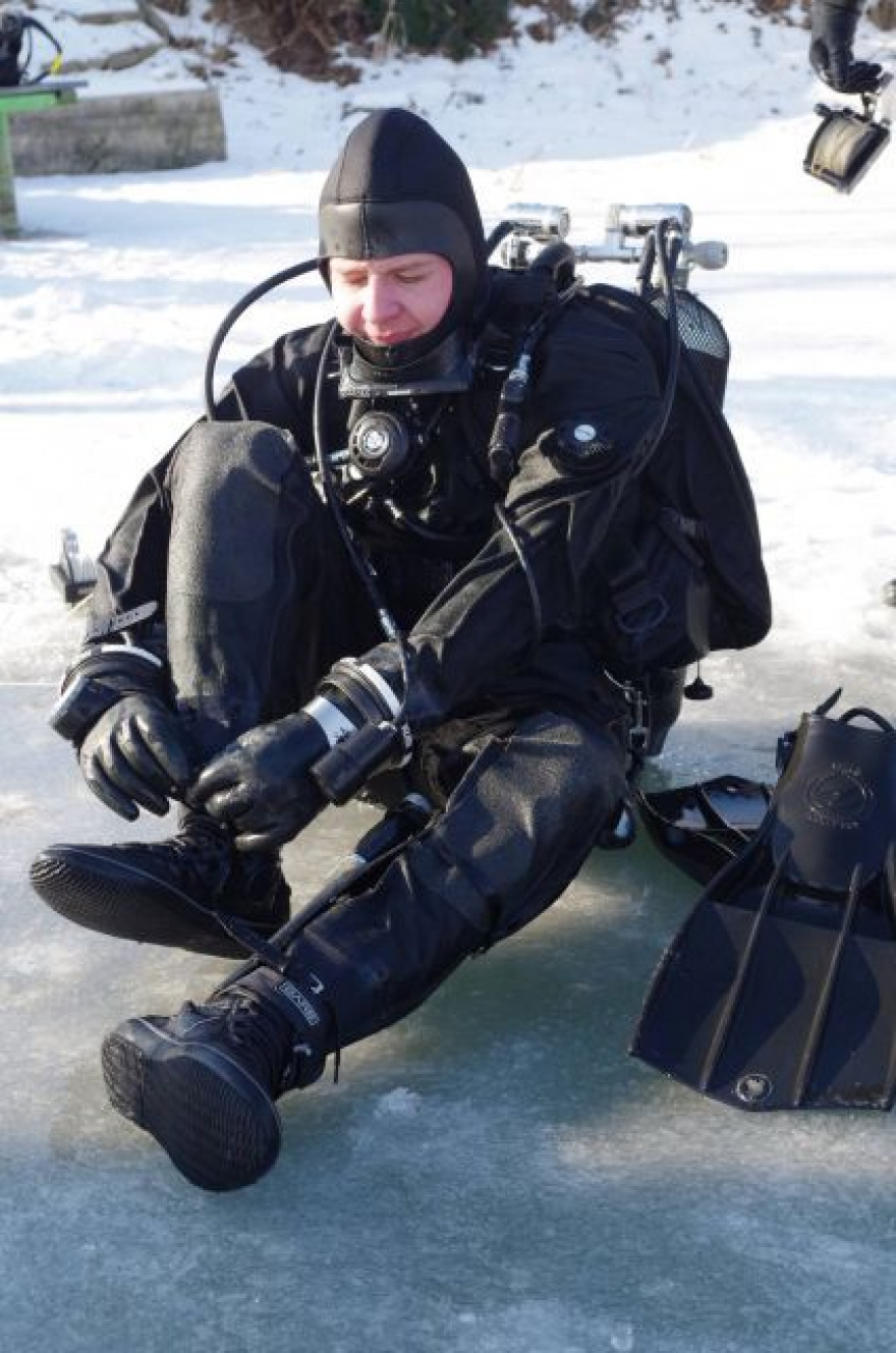 Na Guláške potápačov privítala až trinásť metrov hlboká voda, s teplotou od 2 do 4°C a ľad hrubý vyše 20 centimetrov. Do neho vyrezal potápač špecialista slobodník Matúš Gibas motorovou pílou potrebné otvory. Mali rozmery minimálne jeden a pol metra krát jeden a pol metra. Vyrezanú kryhu rozdelil na niekoľko častí a väčšinu zasunul pod ľad. Počas celého zamestnania bola teplota vzduchu okolo mínus štyri stupne. „Takéto pravé zimné podmienky s hrubým ľadom a doslova čírou vodou sme za posledné roky nezažili,“ pochvaľuje si rotný Búda, ktorý išiel do vody v prvej dvojici a vyviazal trasu pod ľadom potápačským navijákom. Celá trasa bola dlhá do 100 metrov. Je rád, že svoju takmer 30 minútovú premiéru pod ľadom úspešne absolvovali hneď niekoľkí vojenskí potápači: slobodníci Matúš Gibas, Marek Búš, vojaci Gabriel Szalai, Tomáš Bachratý a čatár Rastislav Gronský. Veď pod vodnou hladinou ich čakali mnohé prekážky v podobe kmeňov stromov, vane či plošiny, o ktoré museli urobiť tzv. kontrolný medzivýväz. Úlohy plnila vždy dvojica potápačov. Museli sa vedieť orientovať pod ľadom, na ktorom ležala snehová pokrývka.