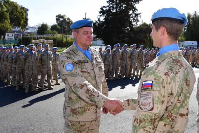 Nástup pokračoval príhovorom veliteľa Sektoru 4 pplk. Rudolfa Eštóka, v ktorom sa poďakoval odchádzajúcej rotácii za veľmi kvalitné plnenie úloh a s tým súvisiacu vynikajúcu reprezentáciu sektoru v rámci operácie UNFICYP. Zároveň poprial odchádzajúcej rotácii šťastný let domov a veľa šťastia či už v osobnom ale aj pracovnom živote.
