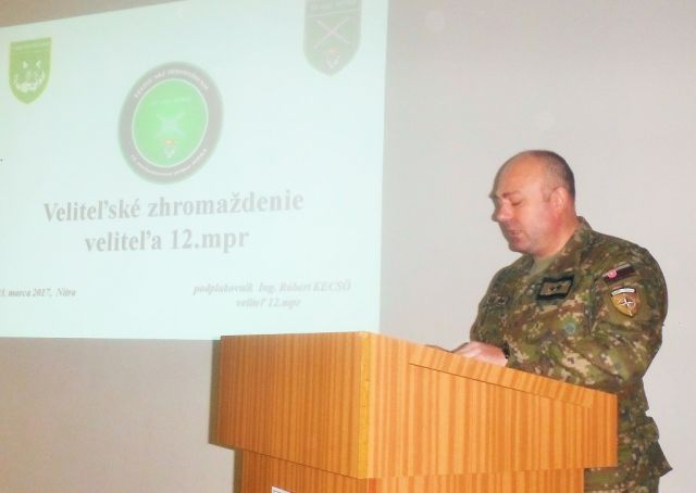 Cieľom veliteľského zhromaždenia veliteľa 12. mechanizovaného práporu bolo vyhodnotenie spôsobu plnenia úloh vo výcvikovom roku 2016. Veliteľské zhromaždenie sa konalo dňa 23. marca v priestoroch kasární 12.mechanizovaného práporu. Pozvanie prijal veliteľ 1.mechanizovanej brigády (1.mb) brigádny generál Vladimír Kubáň a veliaci poddôstojník 1.mb štábny nadrotmajster Miroslav Štadler.