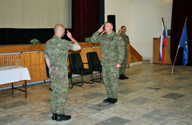 Veliteľ Poddôstojníckej akadémie štábny nadrotmajster Richard FABRICIUS sa vo svojom príhovore nezabudol poďakovať za dobre vykonanú prácu inštruktorom výcviku a zároveň s istotou prehlásil, že 39 úspešných absolventov Poddôstojníckeho kurzu OR-5 spĺňa všetky predpoklady na povýšenie do prvej poddôstojníckej hodnosti „čatár“.