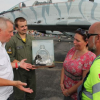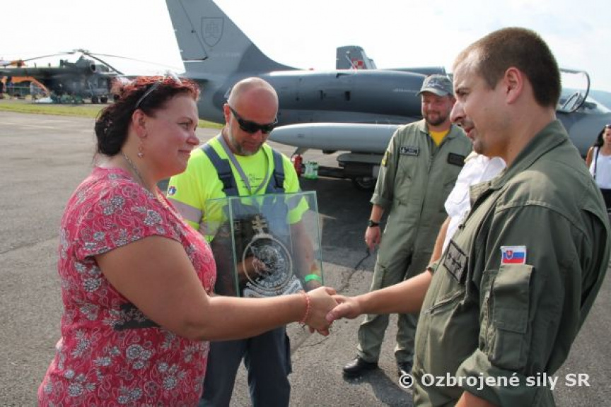 Príslušníkov 1. taktickej letky počas prvého dňa tohtoročných medzinárodných leteckých dní na Sliači čakalo príjemné prekvapenie. Anna Budová, ktorá nepochybne patrí medzi fanúšikov slovenského vojenského letectva a samotnej letky im odovzdala znak 1. taktickej letky, ktorý zhotovila vlastnoručne tradičnou slovenskou drotárskou metódou.
