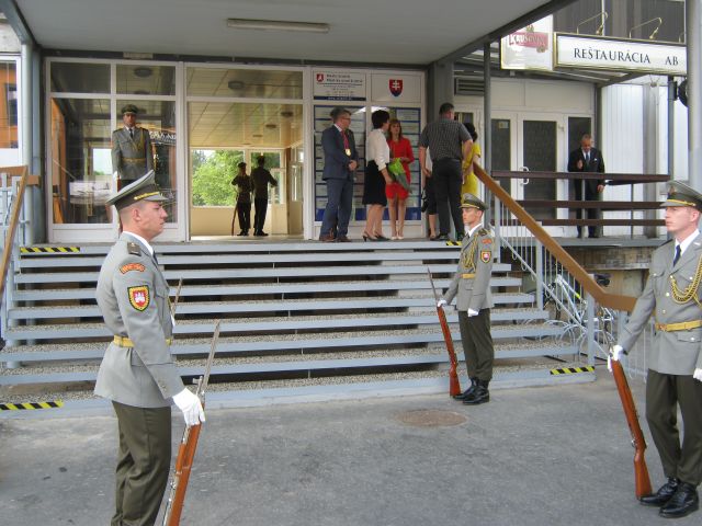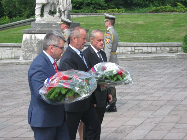 Odtiaľ sa delegácia presunula do areálu VHM, kde neformálne privítali prítomných. Nezabudli ani na padlých príslušníkov sovietskej armády a položením kytíc pri Pamätníku Sovietskej armády vzdali hold ich pamiatke.