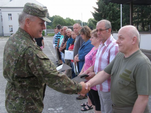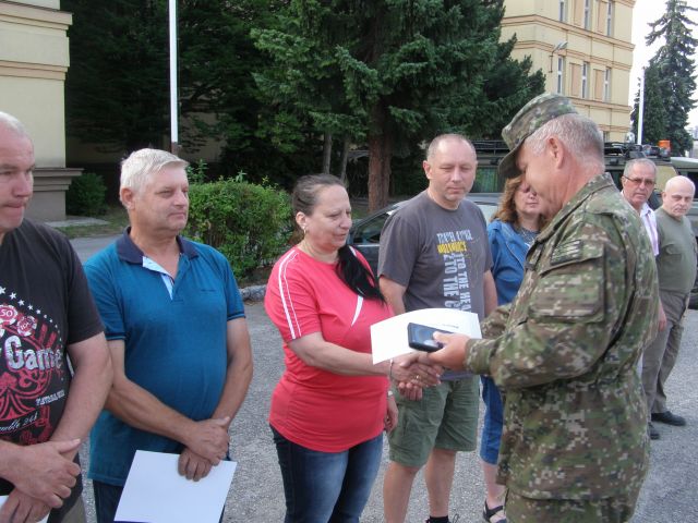 Po udelení medailí sa prihovoril veliteľ Základne plukovník Vladimír KOTRUS, ktorý vyzdvihol aktívnu prácu odmenených zamestnancov v prospech Zásobovacej základne, ale aj OS SR zaželal im mnoho zdravia a úspechov do ďalšie života.