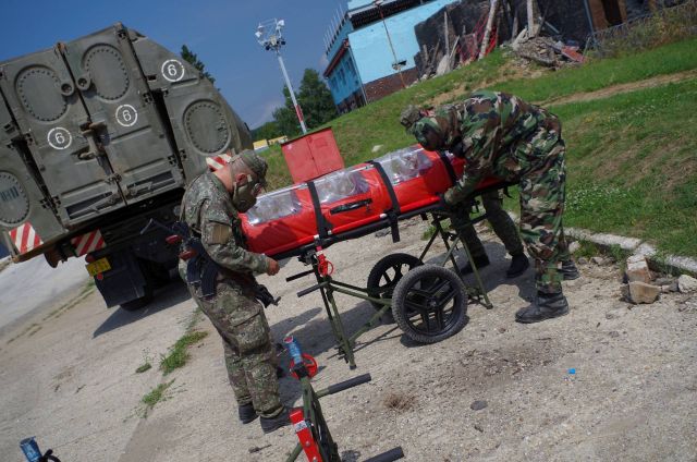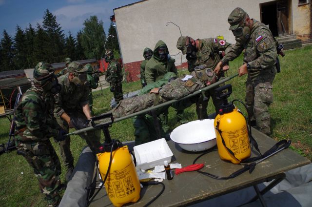 Riadiacim zásahu bol skúsený veliaci poddôstojník čaty dekontaminácie techniky rotmajster Tomáš Božok. Podľa neho i zástupcu veliteľa prvej roty rchbo nadporučíka Petra Gála príslušníci roty predviedli rchbo spôsobilostí. Po výbuchu delostreleckého granátu v objekte nemocnice, ktorý obsahoval toxickú látku prieskumníci s chemickým Aligatorom vytýčili horúcu zónu a pásmo ohrozenia. Následne peší prieskum vstúpil do objektu a podal prvotnú informáciu. Na jej základe bola vybudovaná operačná dekontaminácia. Následne extračný tím ranených vytriedil podľa zranení a zachránil ich zo zasiahnutej oblasti, boli dekontaminovaní a odvezení do bezpečného prostredia.