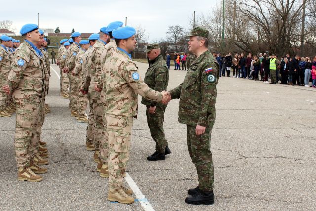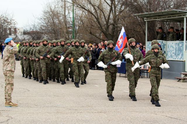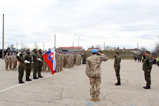 Odnesením štátnej zástavy bol slávnostný nástup ukončený. Rotujúci vojaci vystriedajú svojich kolegov, ktorých privítanie sa uskutoční 22. marca 2019.