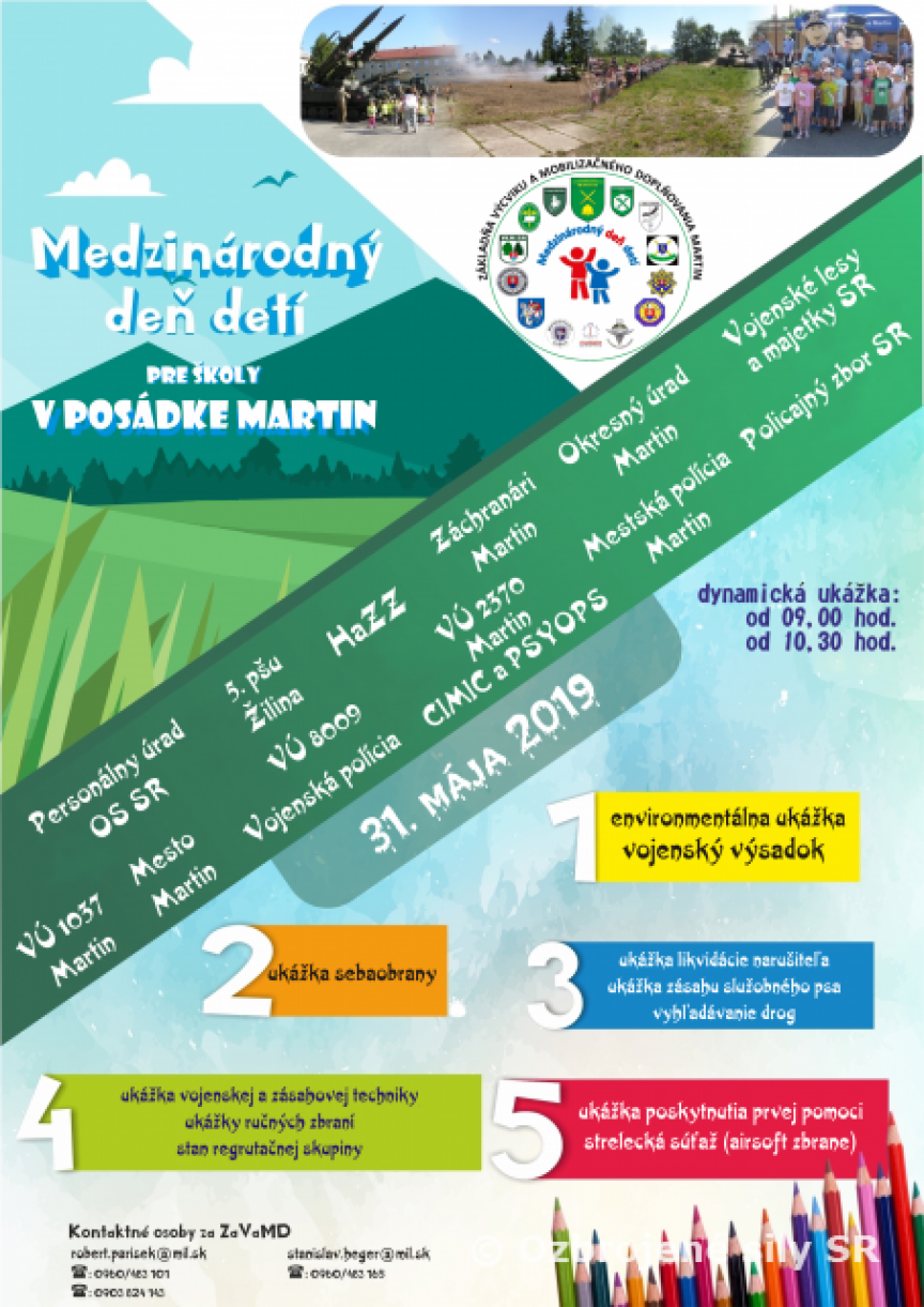 Každý rok 1. júna oslavujeme Medzinárodný deň detí a preto sa posádka Martin 31. mája 2019 rozhodla zorganizovať už po tretíkrát v priestoroch Základne výcviku a mobilizačného doplňovania pre našich najmenších, ale aj veľkých statické a dynamické ukážky Ozbrojených síl a Ozbrojených zložiek Slovenskej republiky.