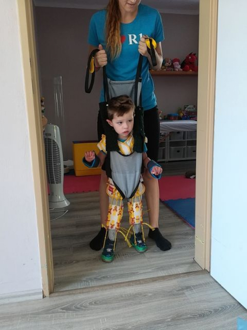 „Náš Aďo sa narodil s PEC (tzv. konská noha). Nohy mal úplne stočené do vnútra. To bola však len jeho prvá diagnóza, ktorou sa začal náš dlhý boj. Celkom tesne po narodení absolvoval 17 sadrovaní tzv. Ponsetiho metódou v Žiline a v Dolnom Kubíne. Hneval sa a plakal tak veľmi, že dvíhaním ťažkých sadier si privolal obojstranný slabinový pruh veľký ako vajce. Keď mal dva mesiace, čakala ho operácia v Bratislave, pri ktorej bolo potrebné preťať achilovky. Aďo následne 8 mesiacov a 23 hodín denne nosil špeciálne Denis-Brownove dlahy. Aby sme to trochu zľahčili, volali sme ich snowboardy. Toto všetko však zanechalo stopy na Aďovej motorike aj psychike. Pri tom všetkom sa však objavili ďalšie diagnózy - hypotónia stredne ťažkého stupňa a zároveň hypermobilita. Zlá kombinácia - slabý a veľmi ohybný. Vojtovu metódu moja žena poctivo cvičila s našim Aďom od 4 mesiacov. Dennodenne tri či štyrikrát. Plakala niekedy viac ako Aďo. Absolvovali rehabilitačné pobyty, kde sa vo Vojtovej metóde zdokonaľovali, navštevovali sme aj súkromnú rehabilitačnú sestru, precestovali stovky kilometrov. V 16 mesiacoch začal Aďo zo dňa na deň štvornožkovať. Viete si prestaviť ten úžasný pocit napriek tomu, že iné deti v tom veku už dávno chodia? No keď mal Aďo 2 roky bol už na Vojtovu metódu veľký. Museli sme začať hľadať súkromné rehabilitácie, ktoré sú však veľmi finančne náročné. Jedna stojí od cca 3500 eur nahor. Poisťovňa neprepláca nič. Vďaka dobrote a finančnej zbierke od ľudí so srdcom na správnom mieste, sa nám podarilo kúpiť rehabilitačný stôl. Cvičenie doma striedali rehabilitačné pobyty, až sa Aďo postavil na vlastné nohy. Keď postupne opatrne prešiel sám popri nábytku, tak to bolo ako zázrak. Neskutočný krok vpred a slzy v očiach. No na samostatnú chôdzu ho telo ešte nepustí. Všetko chce čas a usilovný tréning. Kvôli hypotónii Aďo dlho neprehĺtal sliny a nechával ich tiecť. Už prehĺta, ale nedokáže požuť potravu. Tým, že mal nohy dlho zafixované, má vo veľa prípadoch ako keby „prehodené“ funkcie rúk a nôh. Pridala sa však aj ďalšia diagnóza. Epilepsia. Nikdy nezabudneme na prvý záchvat, keď sme museli volať RZP pre nášho malého syna. Tá bezmocnosť bola neopísateľná. Aďovi sa po tomto všetkom pomalšie rozbieha hlava. Mozog nepracuje celkom ako má, je spomalený. On však bojuje. Po vertikalizácii (státie) sa začína dorozumievať gestami a začína "brblať". Veríme, že pravidelnými rehabilitáciami je možné, že raz z toho všetkého nám zostane len zlá spomienka. O to viac sa v rámci našich finančných možností snažíme chodiť na rehabilitácie. Pre Aďovú činnosť mozgu by pomohla doporučená delfinoterapia, tá sa dá absolvovať však len zahraničí a nemôžeme si ju dovoliť. Samotná terapia stojí okolo 4000 eur a nie je v tom zahrnutá doprava, strava ani ubytovanie. Veľmi prospešná je tiež aj oxygenoterapia. Vieme ju zabezpečiť aj doma, ale k tomu potrebujeme kyslíkový koncentrátor. Bol by prospešný aj na jeho svaly, regeneruje mozgové bunky, zlepšuje imunitu, koncentráciu, pozornosť, pomáha na rôzne neurologické poruchy aj epilepsiu. Na rehabilitáciách ho využívame, ale to je málo. Aďo by mal inhalovať každý deň, tak by to malo efekt. Kyslíkový koncentrátor je však pre nás pridrahý. No ak by ste nám pomohli, azda by sme si ho mohli dovoliť.