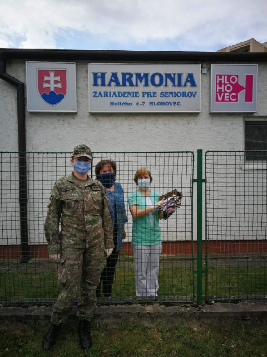 Už prvým dňom ako bol identifikovaný prvý prípad nákazy ochorením Covid - 19 na území Slovenskej republiky bolo jasné, že hygienické rúška budú základom protiepidemiologických opatrení v boji s týmto ochorením. Vďaka nápadom profesionálnych vojakov z Práporu logistiky Hlohovec bol v krátkosti zrealizovaný plán na šitie takýchto rúšok nielen pre príslušníkov útvaru ale aj pre ich rodinných príslušníkov. Postupne sa zrealizoval dobrovoľný fond na zbierku materiálu ako plachty, gumičky a iný materiál a vytvorili sa pracovné smeny z radov vojakov, ktorí mali skúsenosti so šitím na šijacom stroji. Nápad tak z teoretickej formy prešiel do reálnej podoby. Do dnešného dňa sa vyrobilo približne 500 kusov látkových rúšok. Výroba rúšok sa vďaka postupným skúsenostiam zrýchlila, a tak bolo možné poslať túto drobnú pomoc aj za ,,hranice“ práporu. Dňa 14. apríla odovzdala des. Jana Kubaliaková 80 kusov rúšok pre personál a klientov zariadenia pre seniorov Harmónia v Hlohovci. Dar prevzala riaditeľka zariadenia Mgr. Mária Točíková, netradičnou formou – cez oplotenie objektu. Veliteľ práporu podplukovník Richard Beniak poďakoval všetkým tým, ktorí sa na tomto projekte podieľajú. Či už formou dobrovoľnej zbierky na materiál, organizáciou aktivity a v neposlednom rade tým, ktorí nám poskytli svoje ,,neraz“ prachom zapadnuté šijacie stroje. Aj vďaka vám môžu Fénixovia pomáhať...