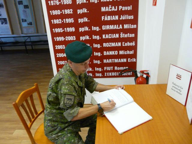 Veliteľa PS OS SR v sprievode veliteľa 2. mechanizovanej brigády brigádneho generála Vladimíra Kubáňa privítal veliteľ práporu CSS podplukovník Ján Farkaš.