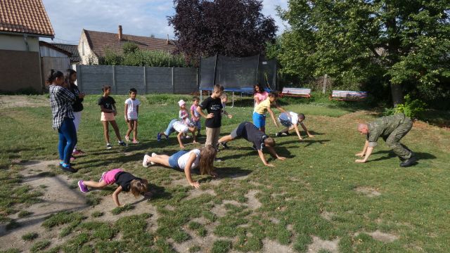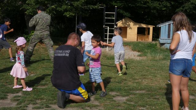 Presne po roku v utorok 3. augusta sa príslušníci Čestnej stráže prezidenta SR opätovne zišli s deťmi z Centra detí a rodiny v Bernolákove. Pripravili sme si pre nich športový program. Rotmajster Jozef Aľušík spolu s desiatnikom Marekom Rybárikom začali s deťmi ráno vojenskou rozcvičkou. V rámci vystúpenia s programom sebaobrany sa deti učili základné prvky hmatov a chvatov. Pre deti sme postavili prekážkovú dráhu, ktorá mala obrovský úspech. Deti behali, skákali, preliezali tunelom, robili kotrmelce či hádzali granátmi na cieľ. Staršie deti dvíhali pneumatiku a robili kliky. Zároveň si deti mohli vyskúšať malé preskúšanie z telesnej zdatnosti v disciplínach ľah sed za 30 sekúnd, zdvihy na hrazde, beh na 30 a 60 metrov. Starším deťom kapitánka Andrea Šantorová objasnila podmienky prijatia do Ozbrojených síl SR a podmienkami prijatia k ČS PSR. Na záver sme s deťmi hrali volejbal a futbal.