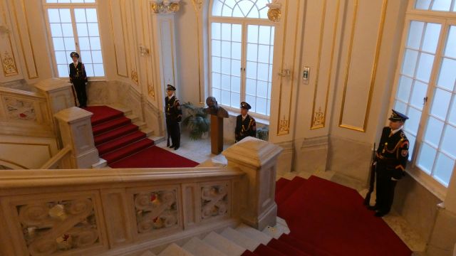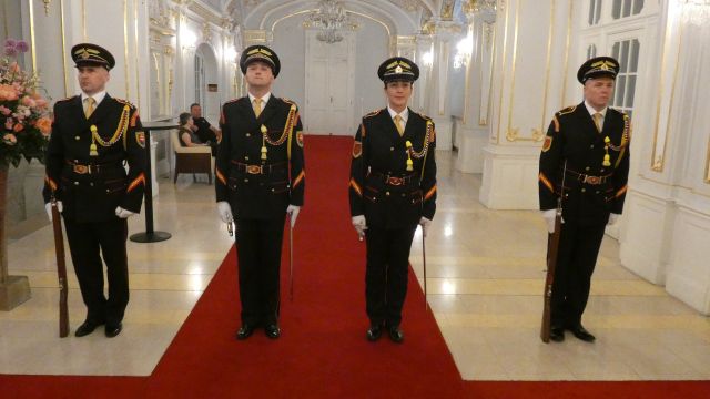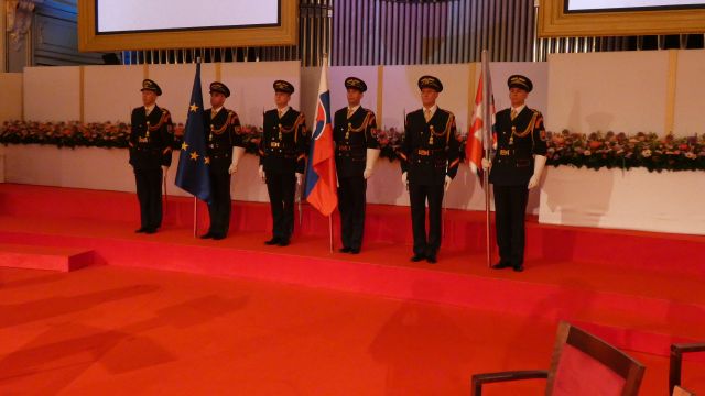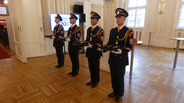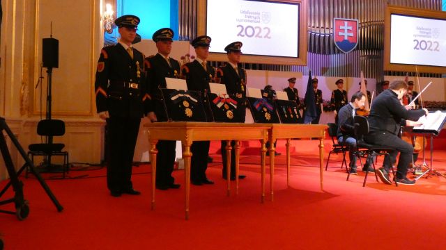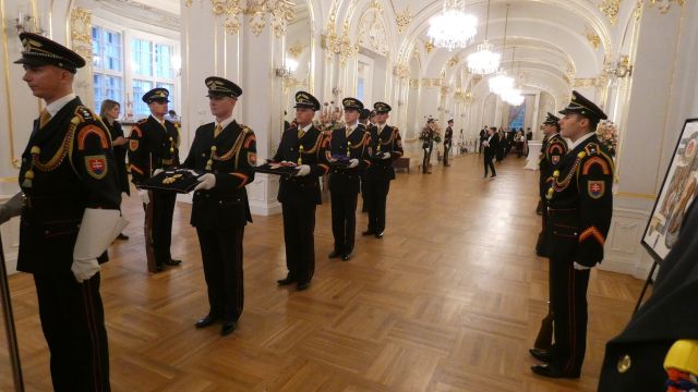 Vojenské pocty počas slávnostného ceremoniálu udelenia štátnych vyznamenaní zabezpečili na vysokej profesionálnej úrovni príslušníci Čestnej stráže prezidenta Slovenskej republiky pod velením kapitána Tomáša Meda a majora Vladimíra Rakoviča.