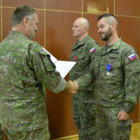 Po prečítaní Rozkazov prezidentky Slovenskej republiky k 78. výročiu Slovenského národného povstania a 30. výročiu prijatia Ústavy Slovenskej republiky veliteľ prvej brigády brigádny generál Alexander Kollárik odovzdal udelené vojenské vyznamenania ministrom obrany SR a náčelníkom Generálneho štábu OS SR spolu siedmym vojakom.