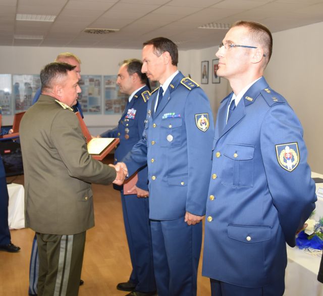 Popoludňajší program veliteľského zhromaždenia pokračoval tichým pietnym aktom a slávnostným nástupom ku Dňu slovenského vojenského letectva na 81. krídle Sliač, kde za prítomnosti pozvaných hostí z radov bývalých veliteľov vzdušných síl a bývalých profesionálnych vojakov vzdušných síl generálmajor Tóth odovzdal určeným príslušníkom ocenenia zaslúžilým pilotom, letovodom, technikom a technikom PVO, ako aj Medailu vzdušných síl a Pamätnú medailu PoSy.