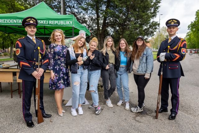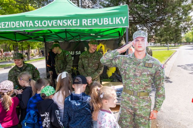 pre prezidentku SR, kde si žiaci napríklad vyskúšali úlohu kráľa a kráľovnej a ich privítanie na letisku alebo vzdanie pocty pri príchode prezidentky SR do úradu. Hudobník slobodník Andrej Lukovský svojim umením hrania na trúbku predviedol úryvky známych melódií, ktoré žiaci mohli hádať. Počas jednotlivých ukážok žiaci súťažili o propagačné materiály, ktoré nám pomohlo zabezpečiť oddelenie marketingu MO SR.