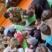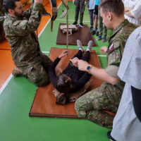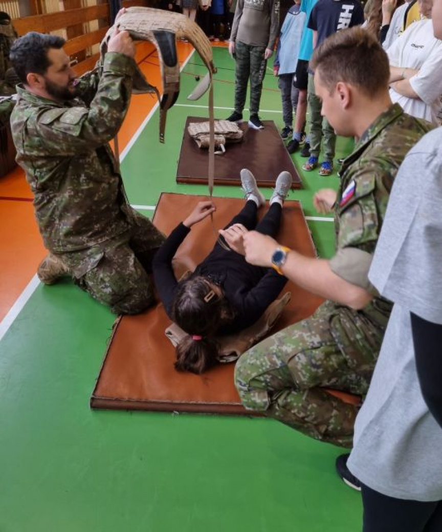 43. zásobovacia základňa sa dlhodobo podieľa aktívne na Príprave obyvateľstva na obranu štátu (PONOŠ) na základných školách v regióne Hornej Nitry. Z prítomnosti našich príslušníkov sa v mesiaci máj tentoraz tešili žiaci druhého stupňa na ZŠ v Oslanoch dňa 3. mája a na ZŠ v Lehote pod Vtáčnikom dňa 17. mája. Čas vyhradený pre účelové cvičenie sme využili na predstavenie vlastností profesionálneho vojaka potrebných pre úspešnú prácu v tíme s cieľom naučiť žiakov zvládanie krízovej situácie cestou tímovej práce po vzore príslušníkov OS SR.