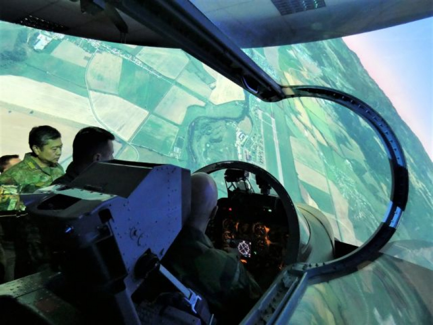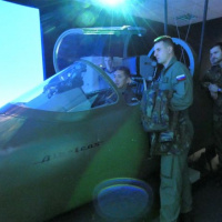V priestoroch leteckého trenažéra predstavil veliteľ 81. krídla vo svojej prezentácii históriu, hlavné úlohy, štruktúru a vybavenie leteckej základne. Vojenskí diplomati sa so záujmom pýtali najmä na budúcu prevádzku stíhacích lietadiel F-16. Program pokračoval ukážkou leteckého simulátora lietadla L-39, kde vojenskí diplomati využili možnosť fiktívne pilotovať cvičné lietadlo. Po "úspešnom pristátí" sa presunuli do priestorov technickej letky opráv a predpísaných prác.