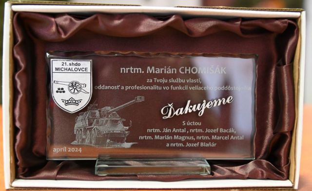 Dňa 29. apríla 2024 sa v priestoroch Duklianskych kasárni konal slávnostný nástup pri príležitosti ukončenia služobného pomeru veliaceho poddôstojníka batérie podpory velenia 21. samohybného delostreleckého oddielu nadrotmajstra Mariána Chomišáka.