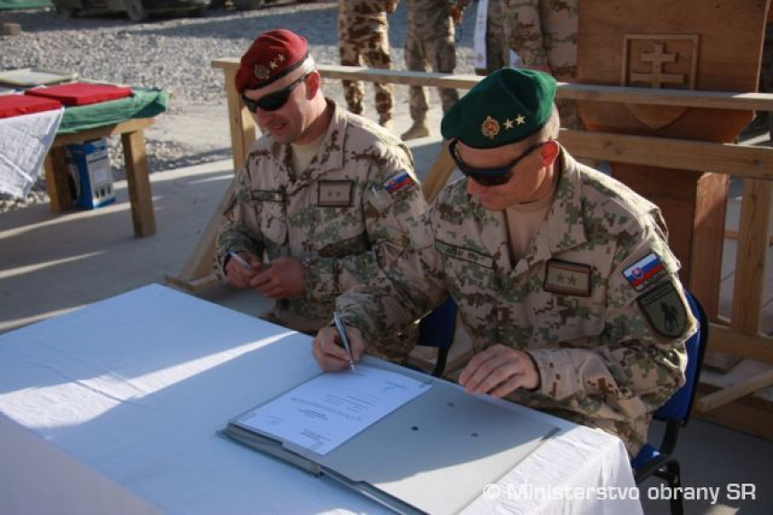 Na záver ceremoniálu podplukovník Štefan Acsai podpisom potvrdil prevzatie operačnej úlohy od odchádzajúceho veliteľa podplukovníka Petra Švrla. Od tohto momentu začína 16. rotácia SLOVCON-u plnou mierou zodpovedať za plnenie všetkých úloh v najbližších šiestich mesiacoch.